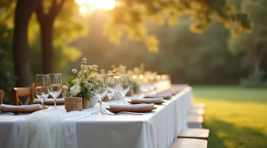 Wood surfaces bring warmth but demand preparation for dining service. The romantic appeal of bare wood tables comes with practical considerations: the risk of splinters snagging expensive fabrics, water staining from condensation, and the decision between runners and leaving the grain exposed. Each choice cascades into others—if you choose gauze runners for that effortless flowing aesthetic, you’ll need strategies for managing wrinkles during setup and addressing fire safety hazards with candles.