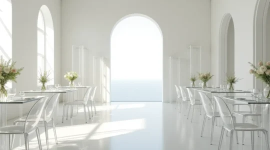 The choice between ghost chairs and acrylic tables often comes down to focal points. If your tablescape is the star, transparent tables showcase it from every angle. If you’re working with standard linens or want to draw eyes upward to tall centerpieces, ghost chairs provide the minimalist frame without competing for attention.